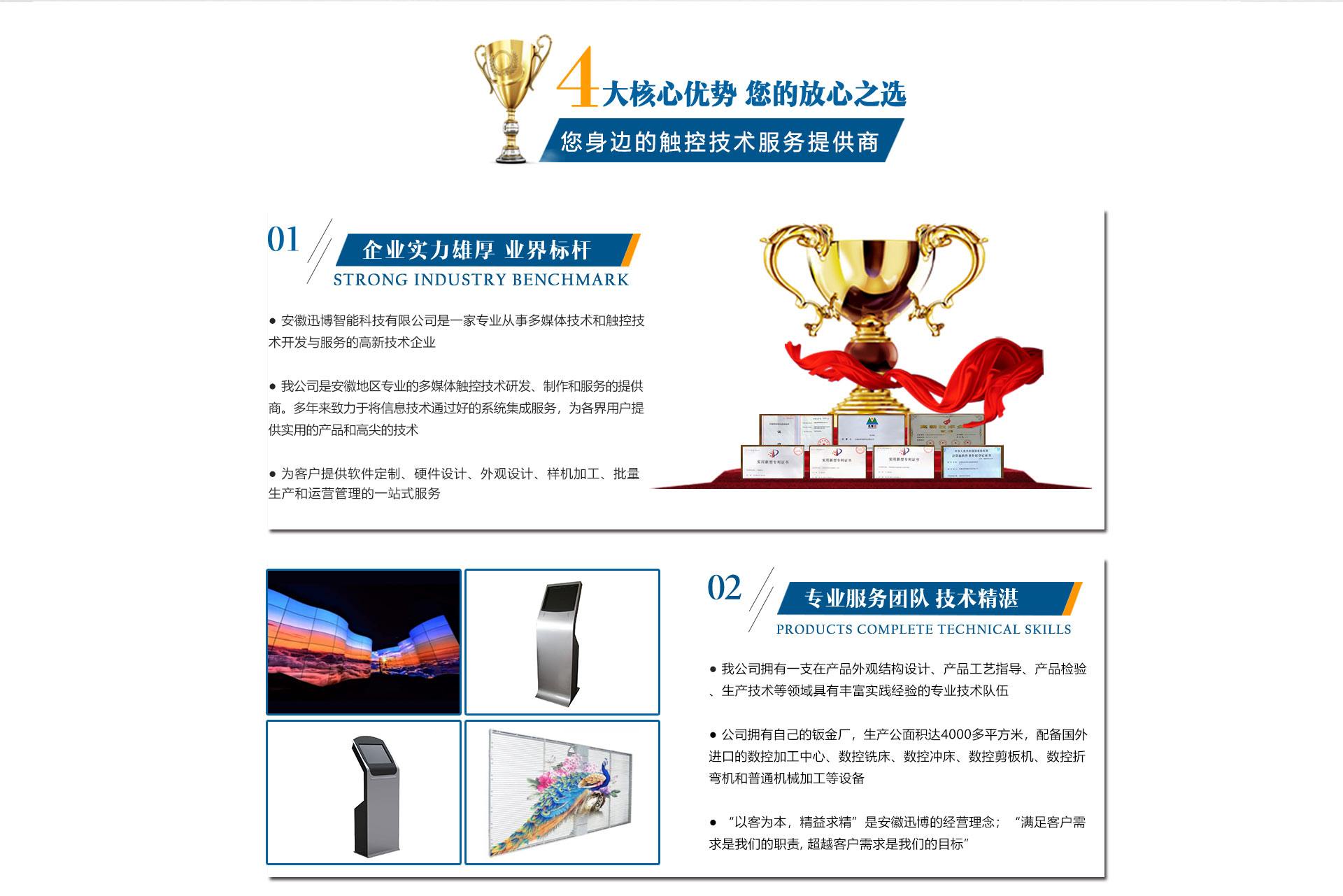 迅博科技 位于中國科教城---合肥市,地處合肥市肥西縣湯口路與皋城路交口西北角人民萬福產(chǎn)業(yè)園一期12棟,是一家計(jì)算機(jī)信息領(lǐng)域的高新技術(shù)企業(yè)公司,全心全意服務(wù)于信息化建設(shè),做信息化提供商,全力打造信息時(shí)代新模式。引進(jìn)了現(xiàn)代企業(yè)管理模式和完善的競爭、激勵(lì)機(jī)智,既具備國有企業(yè)的信譽(yù),又兼?zhèn)渑ζ床⒁恢孪蛏系木瘛Q覆┛萍?擁有多項(xiàng)軟件著作權(quán)證書和多項(xiàng)硬件技術(shù)證書同時(shí)也是一家高新技術(shù)企業(yè),注冊資本達(dá)500萬,辦公面積近1500平米,同時(shí)有合資在杭州成立自己的4000多平米的鈑金廠,公司擁有一支實(shí)力、富有經(jīng)驗(yàn)的計(jì)算機(jī)和信息技術(shù)隊(duì)伍和市場營銷隊(duì)伍,技術(shù)人員都有很強(qiáng)的背景和豐富的實(shí)踐經(jīng)驗(yàn)。一貫注重與...