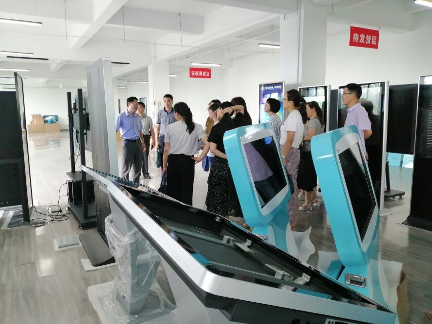 肥西縣人社局等一行領導,參觀了公司的觸控設備、多媒體顯示終端展廳,認真聽取了公司總經理陳光訓的工作匯報,詢問了關于觸摸一體機、排隊叫號系統、廣告機和自助服務終端的生產情況以及運用領域等相關問題,對公司的生產經營情況,市場的應用前景和公司的核心技術進行詳細了解,對公司的產品表示高度認同和贊賞