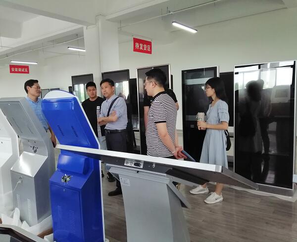 陳總詳細(xì)給領(lǐng)導(dǎo)們介紹了觸摸一體機(jī)、智能排隊(duì)叫號(hào)系統(tǒng)、信息發(fā)布系統(tǒng)和自助服務(wù)終端產(chǎn)品的生產(chǎn)制造及設(shè)備的現(xiàn)場(chǎng)演示,以及公司自成立以來(lái)的發(fā)展歷程、市場(chǎng)銷售情況以及科技研發(fā)等方面情況.