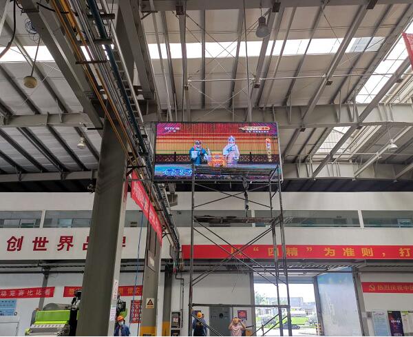 蕪湖中聯(lián)重科生產(chǎn)車間20個平方室內(nèi)Q3全彩LED顯示屏